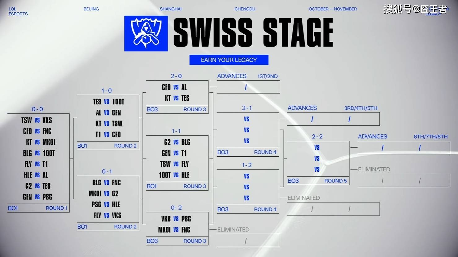 经过前两轮的较量,16战队之间的强弱,已经有了大概的体现,特别是第二天CFO爆冷战胜了T1。那么第三天的分组,就分成了2-0,1-1,以及0-2三组。2-0组:CFO对阵AL,KT对阵TES;1-1组:G2对阵 BLG,GEN对阵T1,TSW对阵FLY,100T对阵HLE;0-2组:VKS对阵PSG,MKOI对阵FNC。10月17日,将有2-0组,带来两场比赛,CFO和AL,KT和TES,他们会带给什么样的惊喜,让我们一起来期待一下吧