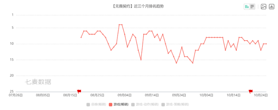 开局的数据也确实漂亮:根据七麦数据统计,上线当天,游戏“秒上”iOS总榜、游戏免费榜Top 1,至今保持高位;随后几天里,它很快冲进了畅销榜前十,最高到过Top 4。