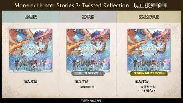 此为最完整的版本,包含“游戏本篇”、“豪华礼包”的全部内容,并额外追加“DLC礼包”。DLC礼包将提供更为丰富的角色换装与怪物发型,包括“异国舞女”、“草影首领”、“爵银龙头冠”等大量额外物品,让玩家的冒险之旅装扮更具个性。