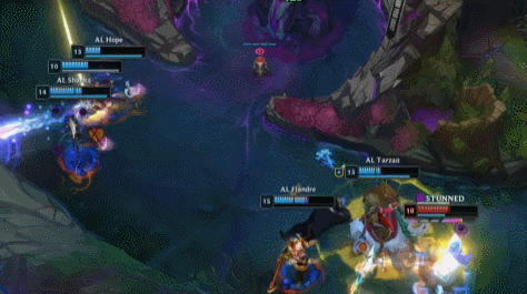 随后的巢虫争夺AL也选择放掉,由于第一条小龙吃的比较早,T1第二条小龙在11分钟就顺利拿下,T1在前期优势较大的情况下,野区抓了一波先手机会但没能击杀,随后AL就地反打,上单圣枪哥TP进场三Q击杀萨勒芬妮,AL一波打出1换3逆转局势。