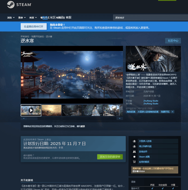 Steam新贵诞生!这款武侠M... 最近游戏圈又炸锅了!《逆水寒》手游官宣11月7日登陆Steam,PC版同步上架的消息刚放出,玩家群里...