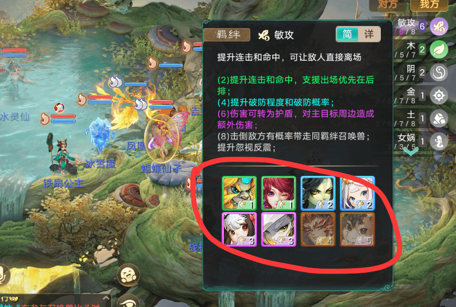 6敏攻羁绊的效果是,伤害可转化为护盾,对主目标周边造成额外伤害,2敏攻提升连击和命中,4敏攻提升破防程度和破防效率。