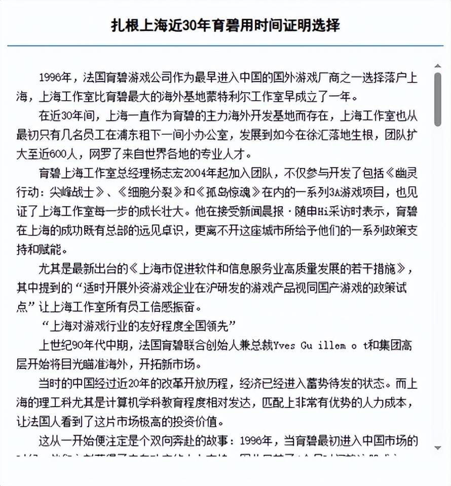最典型的例子就是在90年代,外资进入中国通常是以“中外合资”的形式,但为了吸引育碧,上海政府却“破例”批准育碧成立了独资企业。