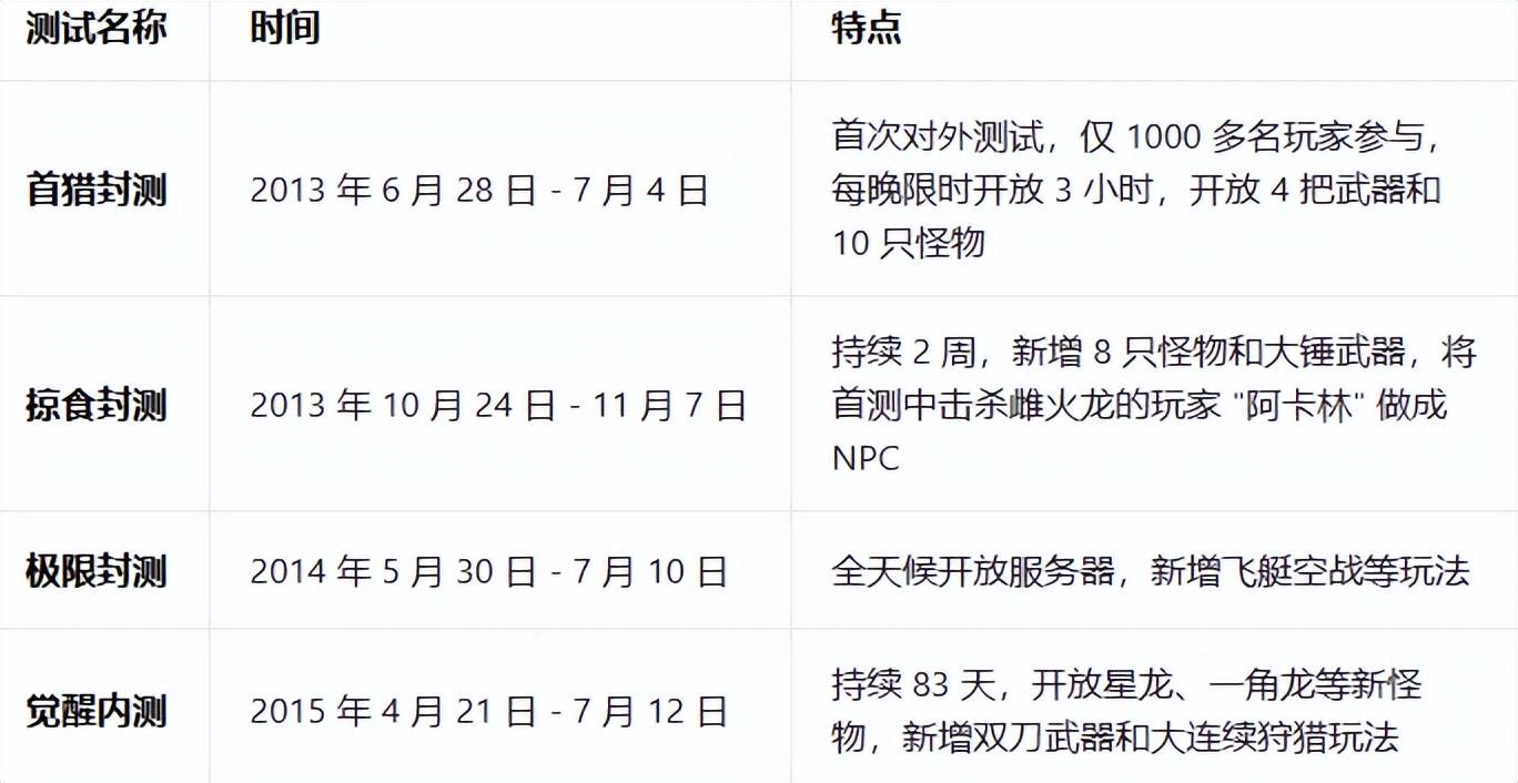 2010年初Demo过审正式开工,直到2013年6月才开启首次封测,耗时三年半,内容却少得可怜,仅4把武器、10只怪物。