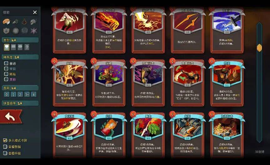 而具体到流派构筑上,战士也可以走传统的烧牌无限流和肚皮流(茶馆暂时没有找到腐败和树枝/(ㄒoㄒ)/),但本作还新增了易伤流,这让战士基础牌里的重锤终于可以和其他体系牌有更好联动,其余角色也是如此,老玩家们可以按照一代的思路开荒,逐渐解锁新卡后会发现二代的构筑空间上限极高。