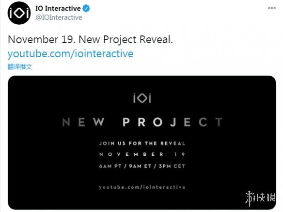 IO Interactive工作室正忙于开发杀手3,但今天晚上IO Interactive官方宣布将于11月19日太平洋时间早上6点(北京时间明天晚上10点)启动一个新项目。