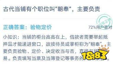 蚂蚁庄园古代当铺中的朝奉是什么意思?在古时候朝奉是当铺中的一个职位,具体所要负责的事情下面会有答案为大家介绍,还并不是特别了解朝奉这个职位的玩家,可以快速通过下面18183小编带来的攻略了解详情。