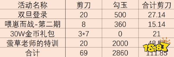 69把剪刀,2860勾玉。合计111.85把剪刀