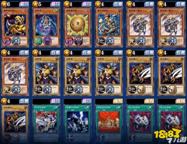 成之类斧王卡组:3钢铁骑士,3刀斧怪,3牛头魔人,1球形栗子,1异次元战士,1欺诈师,1电子魔导巨人。2敌人控制器,1锁链飞镖,1金属反射装甲,1对死者的供物,1自律行动部队,1扑灭之使徒。