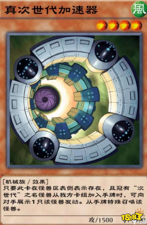 次世代卡组的优势是非常容易扩大优势,让对手感到绝望呢。用次世代的上级召唤出次世代军团可以选取敌人一张卡牌进行破坏,这一效果可以说能解任何困难,非常强力的效果。真次世代加速器可以将自己的次世代怪兽在场上进行特殊召唤上场,真次世代加速器还有1900的防御相当可观,当前游戏环境里算非常强的卡了,建议多带几张。