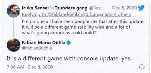 现在据外媒Gamingbolt报道,CDPR公关经理Fabian Mario Döhla在解答玩家问题时,有玩家询问:“听说《赛博朋克2077》主机版更新后,游戏稳定性会提升,很多方面与旧版截然不同?”Fabian表示《赛博朋克2077》主机版更新后会脱胎换骨,将是“另一款游戏”。