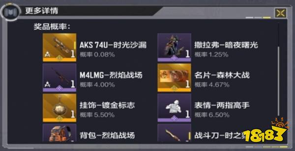算是游戏中的时光沙漏转盘的紫色道具,平均的抽取概率为第九次,当然也不排除有些玩家可以几次就可以抽中,但是这个概率肯定不能作为参考,大部分玩家都是在第九次,也就是倒数第二次才可以得到这个人物皮肤哦。不过根据很多玩家的抽取结果,这个概率还是非常高的,普通玩家大概在1-7次有很高的概率可以得到。