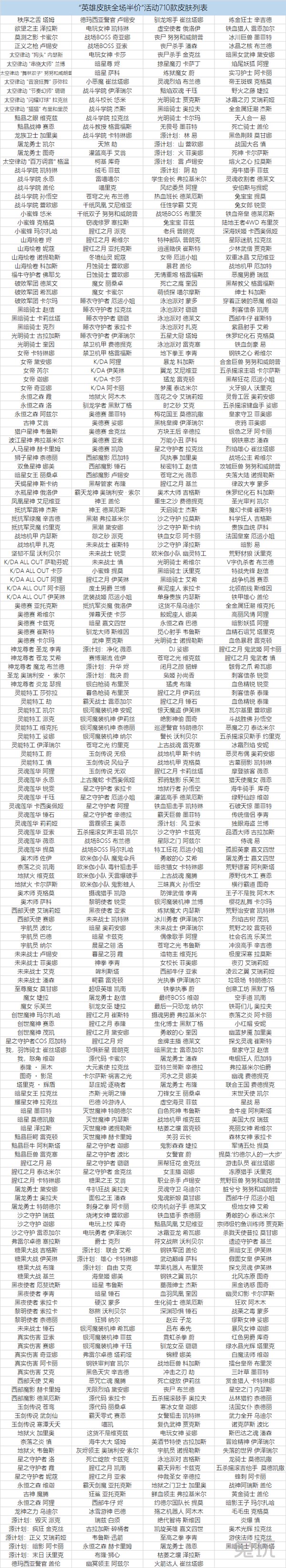 英雄皮肤全场半价活动710款皮肤列表详见文末附表