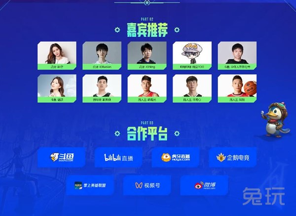 嘉宾:虎牙-林守、虎牙-iGBaolan、虎牙-iGNing、哔哩哔哩-我是TOO、斗鱼-中年人拳师七号、斗鱼-骆歆、野球帝-郭师傅、路人王-韩曙光、路人王-平常心、路人王-周锐;