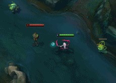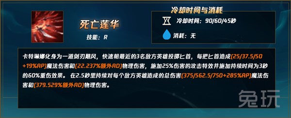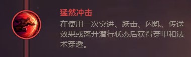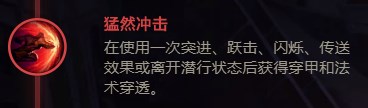 卡特的位移在说明上是标注了瞬移,极快的位移速度和看不懂的位移距离,使得猛然冲击带来的穿透效果格外明显,对于前期堆法强和吸血的我们而言,无疑是最好的选择。
