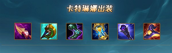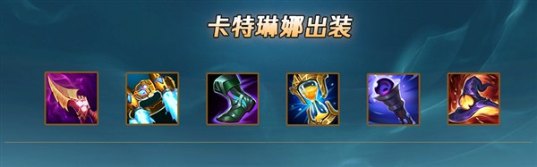 卡特技能衔接快,触发时间短,在先用Q弹到对方英雄的一瞬间,可以用EWAR瞬间叠满征服者(E踩被动算两次伤害四层征服者),与此同时触发的还有纳什之牙和峡谷制造者的、被动。征服者与纳什、峡谷制造者属性契合,可持续输出空间大。