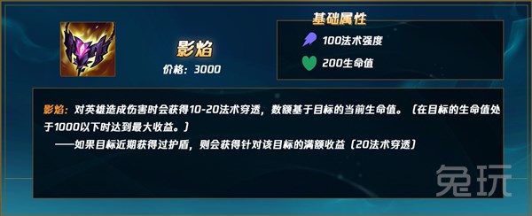 高额的法强,不俗的生命值,额外的法穿,还有对护盾目标的满额法穿加成。将其命名为S12赛季“卡特的新装备”绝对不过分。