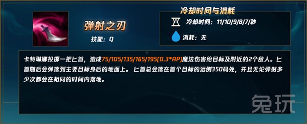 被动是卡特琳娜输出的核心,通过QW创造的匕首,在踩到过后会造成巨额的AD/AP双加成范围伤害。而要注意的是,匕首是一个较小的范围伤害,需要多练习感知避免被拉扯