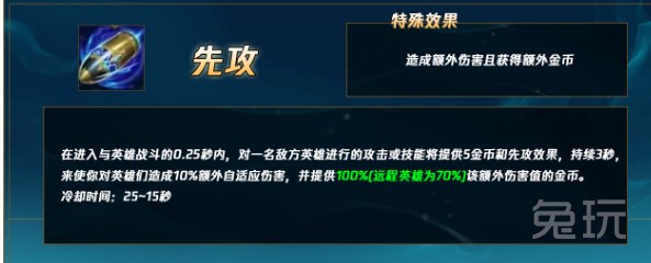 伤害来源速度快。前期带先攻和带电刑的伤害基本相同,并且还会获得等额额外伤害的金币,成型快。