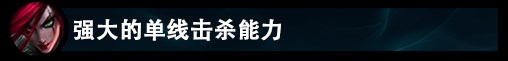这是一个分段低容易carry,但是分段高容易鸡肋的英雄,就是因为其易针对的属性。卡特琳娜被针对至无作用的情形有且不仅有以下几种:对线强势碾压致崩(如卢锡安、阿克尚等)、中野联动越塔致崩(奇亚娜蜘蛛、鳄鱼蜘蛛等)、团战留技能没法打伤害崩(璐璐变羊、风女R捡不到匕首、日女锤石机器等留控制技能)。