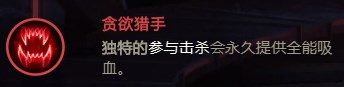 这一套符文并不像前面第一套符文有三全能吸血在身,能够回血的机会屈指可数,所以点出贪欲猎手,保证我们有回血的途径。