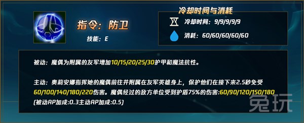 发条的另一个调整球位置的技能,起保护作用,主要是及时给予队友或自己一定的护盾值和w技能r技能进行配合使用,可以使球快速的到某一个人身上,如果球离你很远敌方又离你很近时可以使用Alt+e的连招迅速使球回到自己身上进行操作或用e技能套给需要进场或保护的队友。也可以用来打伤害,但敌人要在球运行的轨迹上才会受到伤害,迅速连招触发相位猛冲换血的关键。
