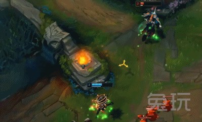 这里小鱼人想上来和我对A换血,但没想到我的骸骨镀层让他完全戳不动,发条的被动是越打越痛的,所以我们在有骸骨镀层的情况下一定不要害怕这种对A。