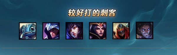 较好打的刺客有小鱼人,男刀,狐狸,妖姬,劫,塞拉斯。