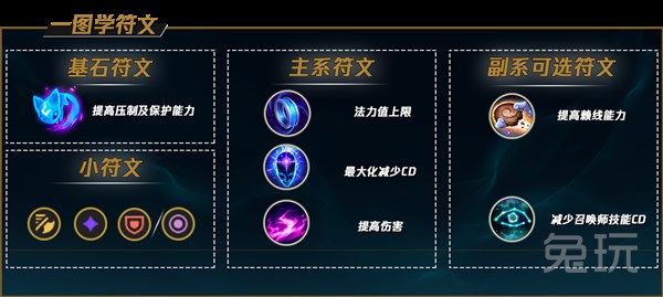 我们要利用手长的特性去偷A刺客并且在A的间隔内用无前摇的q来消耗敌方,当兵线拉到靠中的位置我们就可以呼叫打野来帮忙蹲了,而且可以看到当我们选择了骸骨镀层之后敌方的爆发一时间是构不成威胁的,我们可以有很大的操作空间。对应上方的符文选择。