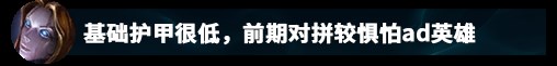 基础护甲很低,前期对拼较惧怕ad英雄。