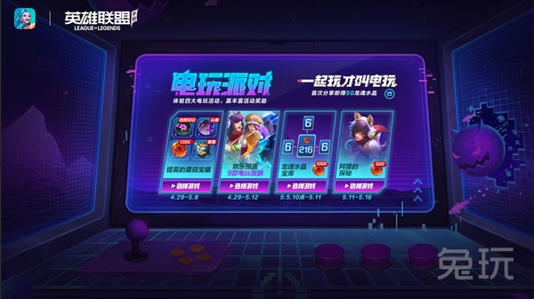 临近五一佳节,英雄联盟手游的活动也是安排的满满,开启电玩派对福利送不停,皮肤水晶拿到召唤师手软!让我们一起来看看究竟有哪些重磅活动吧。