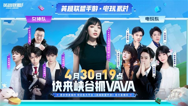 在4月30日晚19:00,实力rap女歌手VAVA将登场电玩派对,这位从超燃测试就开始加入的明星召唤师将和斗鱼灵药等主播组成女神队,对抗斗鱼太阳、B站雪糕等主播组成的电玩队。只要在各大官方平台关注这场比赛,就能获得更多的福利。