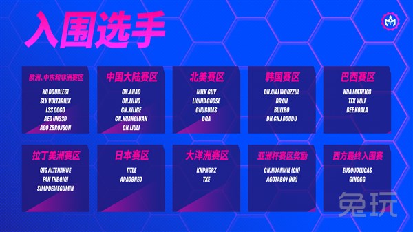 通过入围赛选拔的 32 名来自全球各个赛区的顶尖选手将向 30 万美元的丰厚奖金和《云顶之弈:双城之战》全球总冠军桂冠发起冲击!以下是入围选手名单: