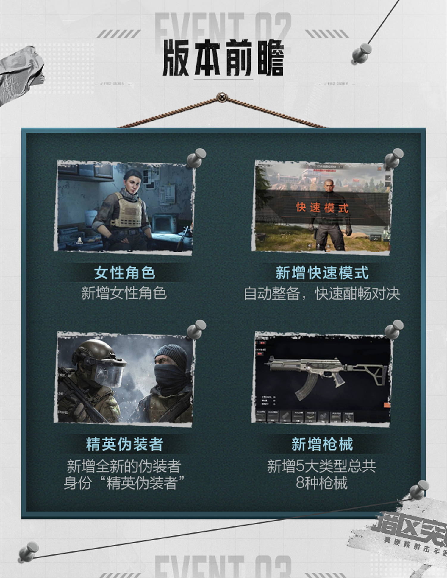已有的伪装潜入模式还不够过瘾?在新版本里大家能够体验到【精英伪装者】这个新模式!届时精英伪装者可以带领队伍进入普通伪装者无法进入的地图,带来更加过瘾的战斗体验!