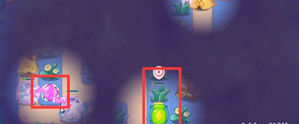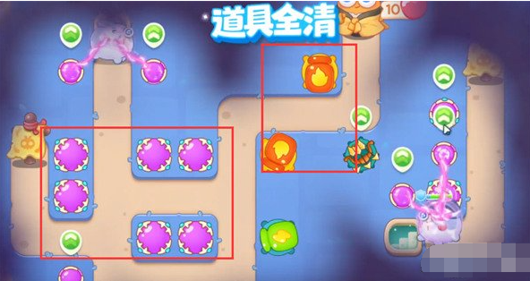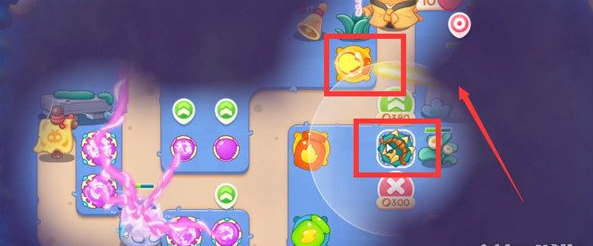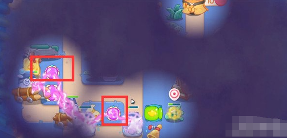 8、最后我们优先锁释放果冻的炮塔,最终炮塔摆放位置如图所示。