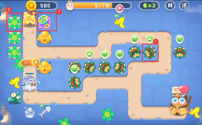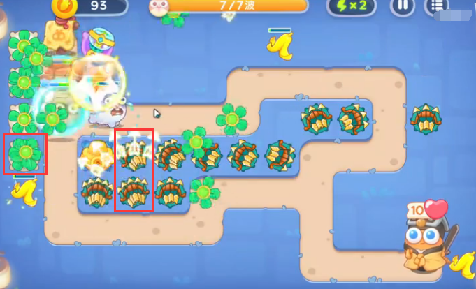 6、多重箭,升级。左上一个风扇,升级。旁边一个魔药塔并升级。