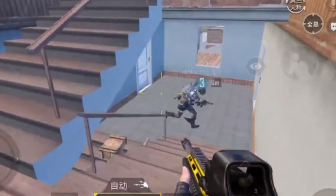 当敌人被堵在房子的楼梯上时,我们可以从一楼的门跳到二楼窗户的边缘,这样我们就可以清楚地看到敌人并杀死他们。 如果敌人在阳台上,我们可以从窗户边缘跳到阳台上。