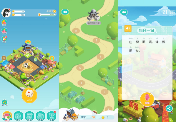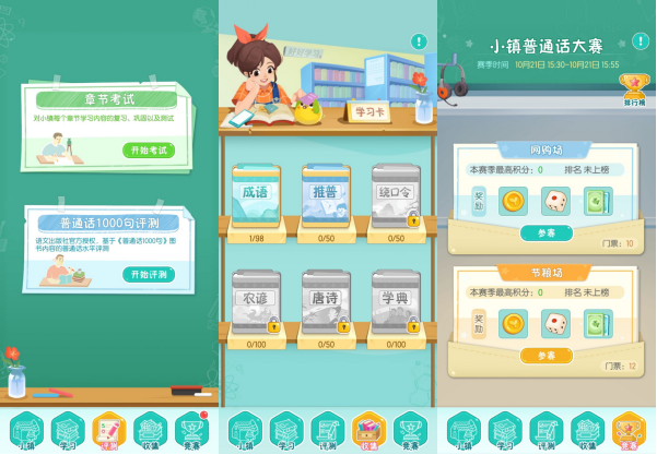 普通话镇将建设过程与普通话语音培训相结合。 玩家可以获得一定数量的金币,只要他们说标准的普通话,就可以解锁更高的建筑等级。