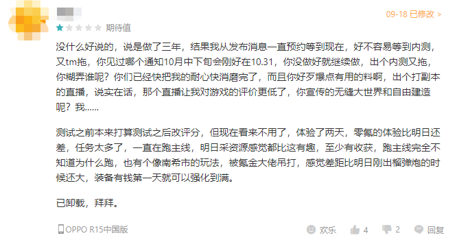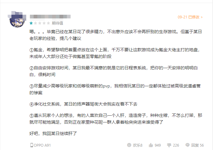 另一方面,黎明觉醒也是一张无缝的地图,但它做得很差,整个地图是巨大的,但非常空的,有空气墙。 在肝脏方面,“后天”第三季开始实施降肝策略,反之“黎明苏醒”评论区都是玩家抱怨的主线任务,设备升级,十个肝脏不够来肝脏! 特别是,做一个小任务将全地图运行,对玩家的游戏体验极差,任务被玩家称为“商务旅行“。