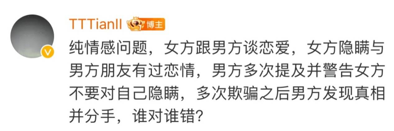 回复的内容是讲述了一个看起来比较老套的恋爱剧情,女方与男方谈恋爱,女方隐瞒了自己曾经和男方朋友谈过恋爱的事实,男方多次提及这个事情并且警告女方不要隐瞒这种事,结果事情败露男方发现真相后分手。