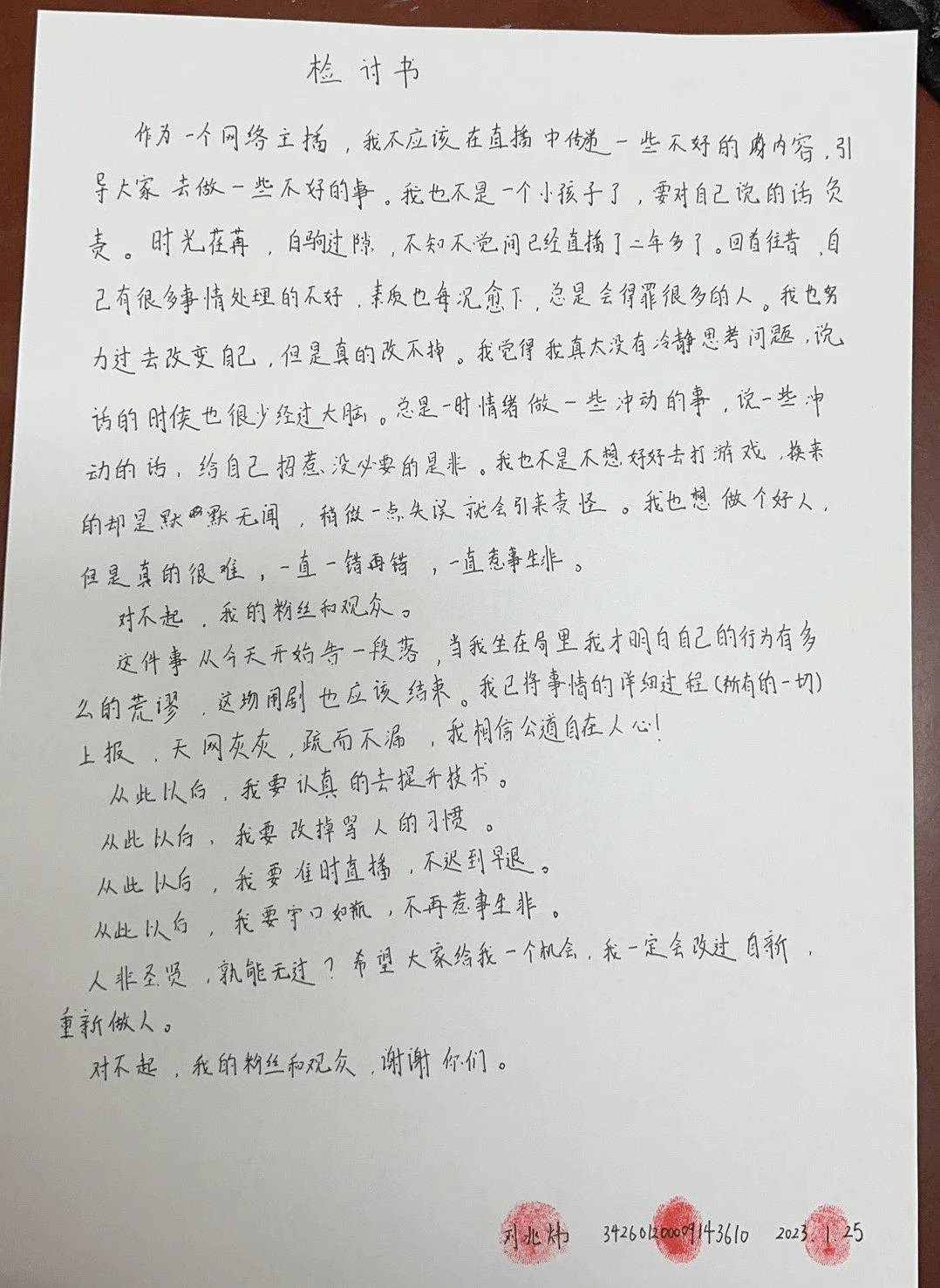 但没想到这个事情的结局却非常狗血,天灰灰是直接发布了一篇手写的检讨书。