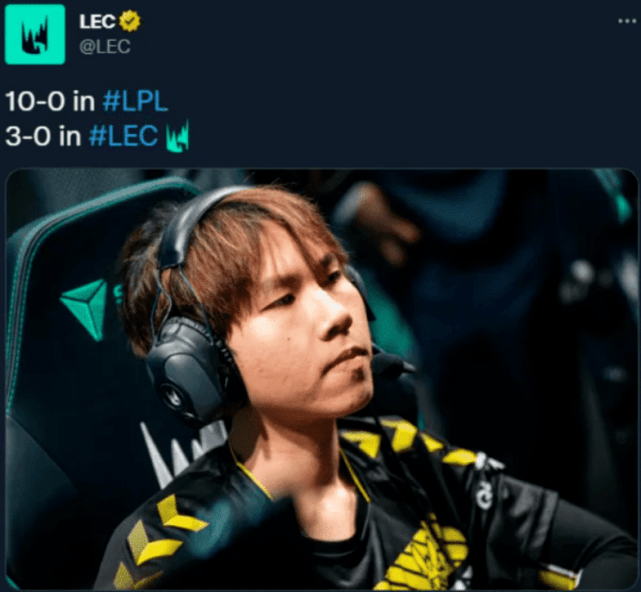 他之前在LPL出道之后,也是10场连胜,而且数据都非常好,加强3场欧洲赛区的胜利,13场连胜这个豪华数据已经是LEC赛区那边狂吹的依据了,而且现在在欧洲赛区也无人能敌,所以一下子就成为了他们眼中无敌的存在,他和中单的中野联动也是非常让人赏心悦目。