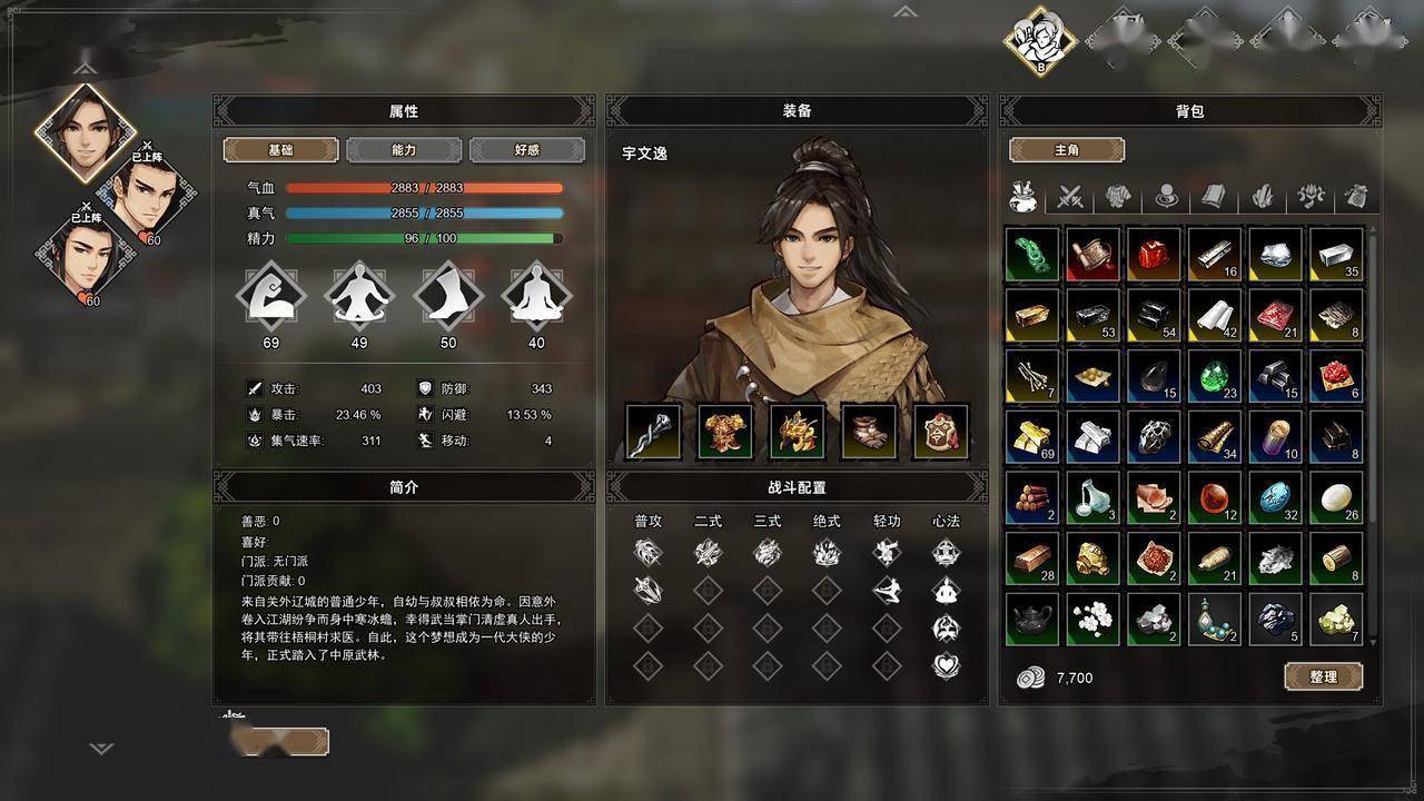 除了主角自身外,玩家还可以与江湖中的其他角色培养关系,邀约共同闯荡武林。不同角色将能为主角提供不同的帮助,选择合适的同伴,江湖冒险将更为轻松。