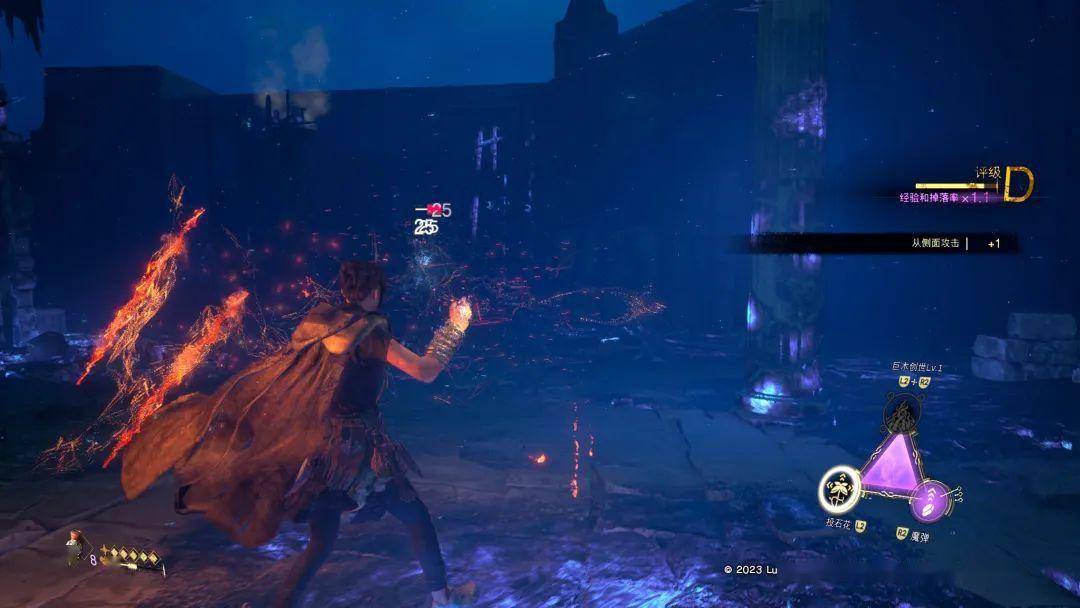 不同于如今的大多数同类型作品,《Forspoken》刻意地削减了“等级”这一引导成长的关键设定,尽管在消灭敌人时游戏会显示主角获得了经验,但累计一定经验后只是能给主角提供一个额外的技能点,为数不多能为主角提供成长元素的,则是披风和饰品两种。而关于天赋树上的所有词条解锁方法则是通过主线、泡温泉等方式来逐步获得。而这样的设计所带来的问题就是类似支线等环节所提供的奖励很难提起玩家的兴趣,但同时这样的成长设计也恰好解放了等级机制给开放世界框架所带来的局限性,如果你并不喜欢条条框框的任务限制,那我想至少在这点上本作还是蛮值得推荐一番的。