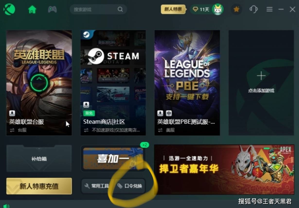 一.下载了迅游加速器,打开后在搜索栏中只需要搜索英雄联盟台服,就会有画面出现了。但是在下载之前,先要用口令领取五天VIP口令:迅游666。只需要点击口令兑换,就能够拿到了,还是相当方便的。