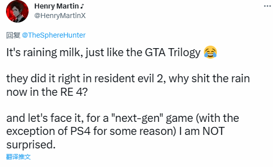 《生化危机4:重制版》演示雨水效果遭吐槽