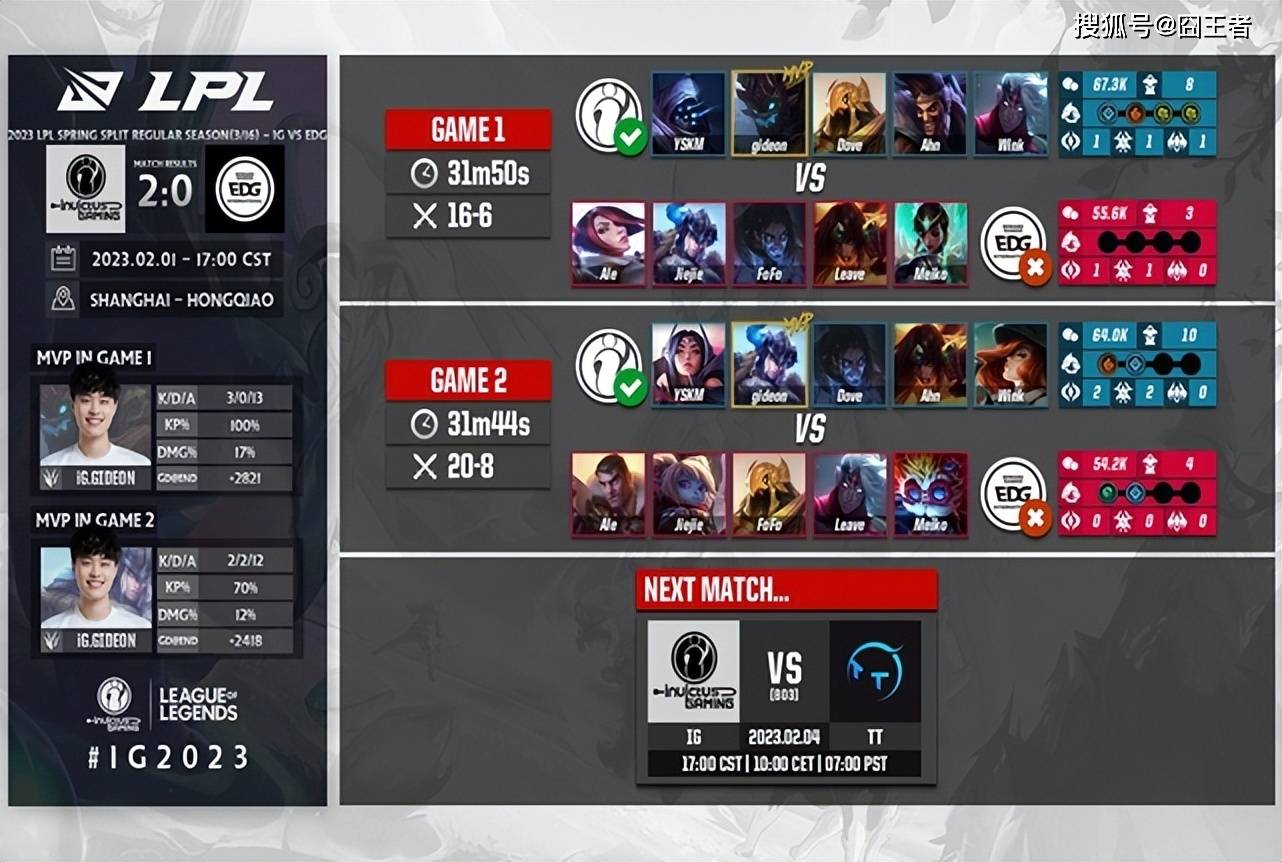 第二局比赛中,iG继续整活,再次祭出了双AD英雄走下路的玩法。结果这一局比赛,EDG依旧是被iG打得找不到北,下路再次被直接打穿。31分44秒,iG轻松零封EDG,斩获自己春季赛的三连胜,高居积分榜第一位!