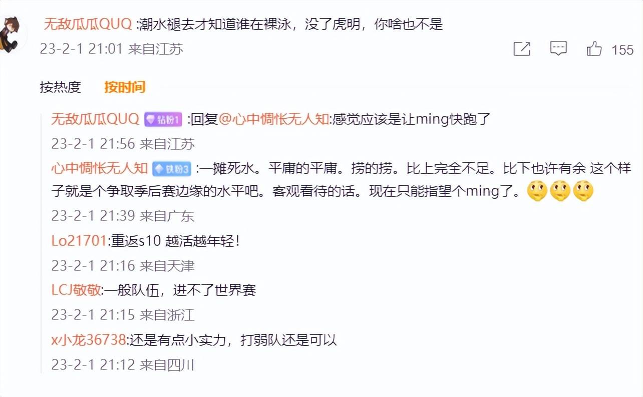 当然,这个刺激并不是说比赛的激烈程度,而是RNG输了之后的舆论刺激,太火爆了,RNG果真人气高,被LNG剃光头之后,RNG可是两连败了,而且都是剃光头,难受。反正这个时候,RNG的老粉丝们真的很想念小虎了,虽然现在RNG中路个人实力确实不错,但是和团队的磨合,差点意思,还是小虎适合。