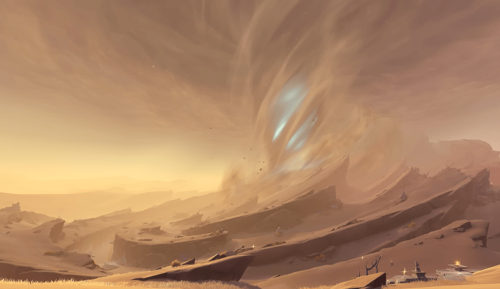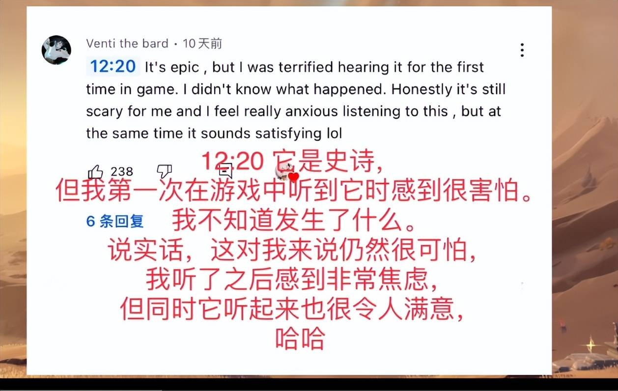 你没听错,不少玩家从音乐中感受到的,首先是“情绪”。与须弥的森林部分不同,沙漠地区空旷的环境,巨大的异象场景等,都会诱发一些玩家的孤独和恐惧的情绪。再加上剧情里的一些诡异事件的渲染,让音乐和故事设定融为一体,增强了玩家的感官体验。