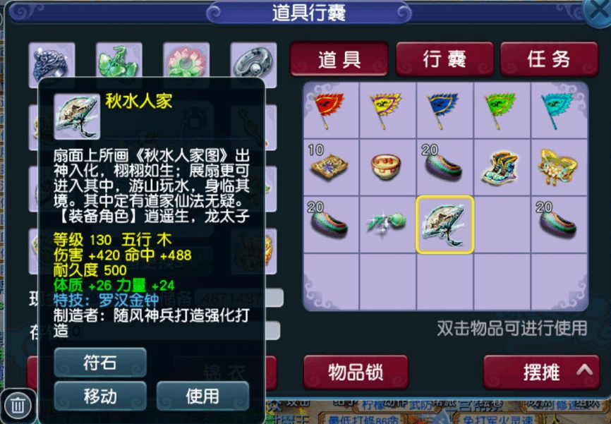 下午,有位玩家遇到了麻烦事,事情原由是一朋友欠6000块钱一直还不上,朋友就拿这把130级国标属性并力体双加50的罗汉扇子抵债,玩家也不懂这类高端武器的价值,不知以后见面是请吃饭还是打一顿。